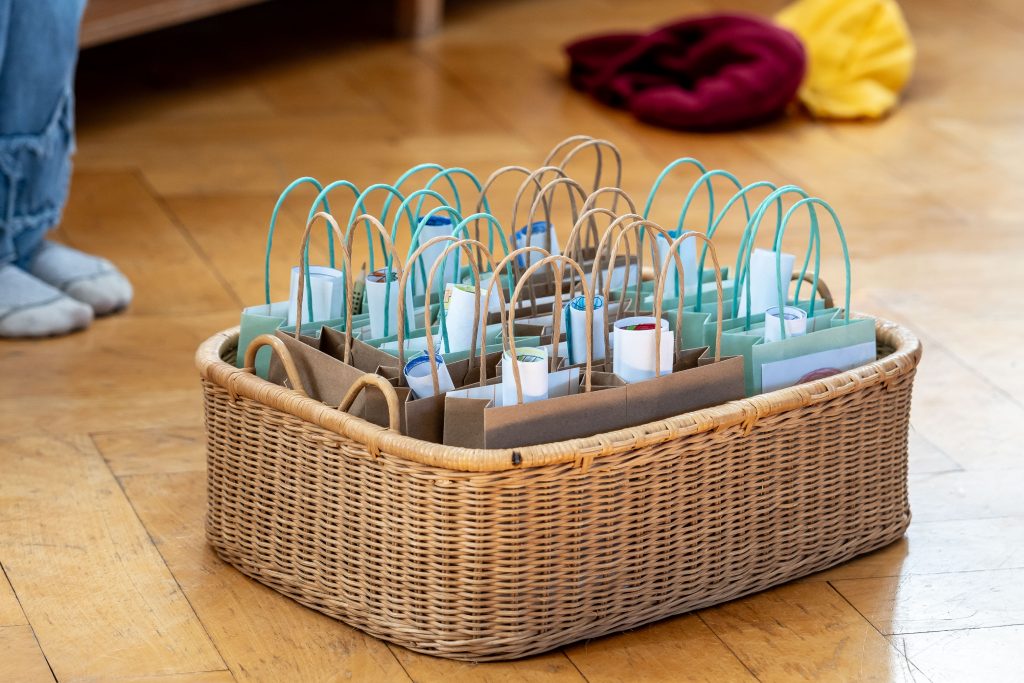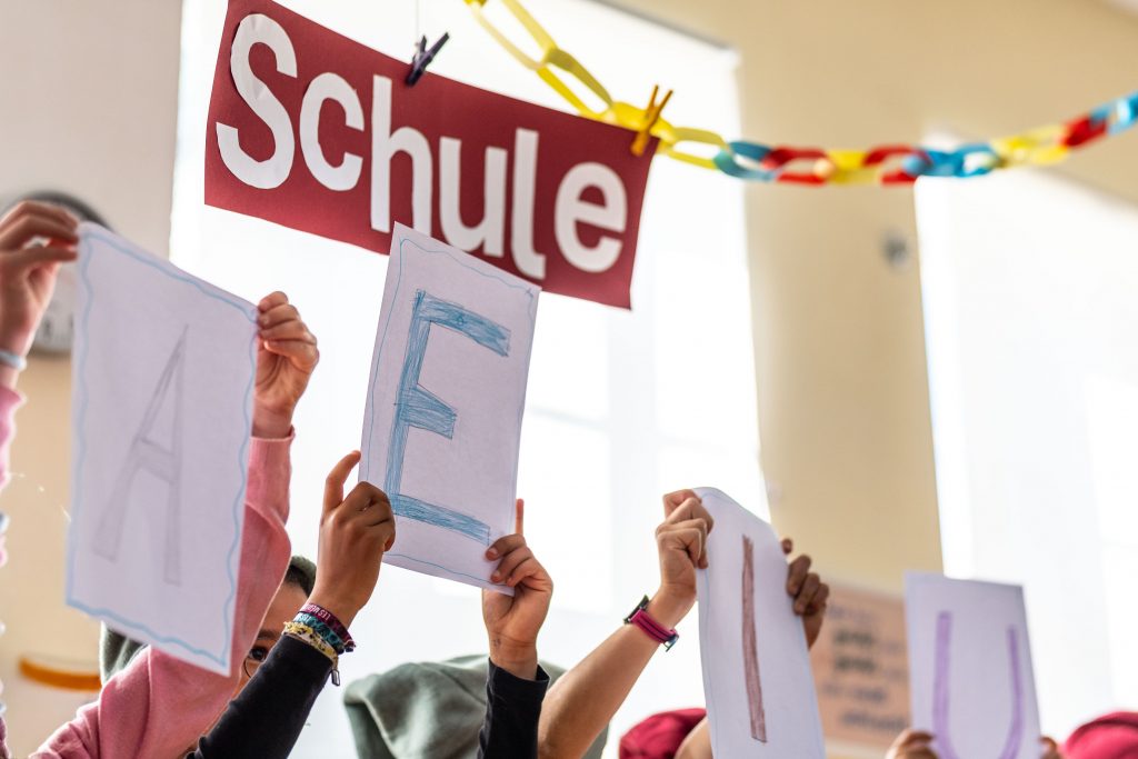 Im festlich vorbereiteten Lernraum begrüßten Schülerinnen und Schüler die neuen Kinder mit einem Lied. Ihre Paten und Patinnen aus den höheren Jahrgängen nahmen die Neuen feierlich in Empfang, überreichten selbstgefilzte Kronen und hießen sie so offiziell in der Schulgemeinschaft willkommen.
