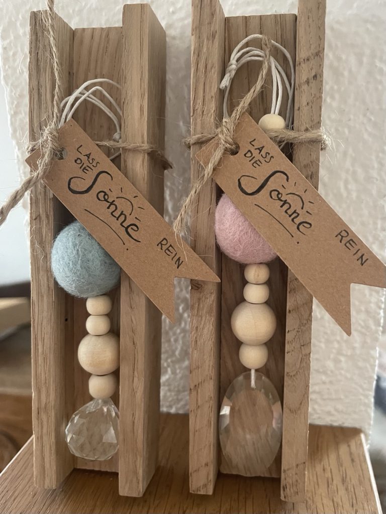 Rechtzeitig zum Frühlingsanfang ist unser Verkaufsschrank prall gefüllt mit Deko-Accessoires, kleinen Geschenken und Mitbringseln – darunter Sonnenfängern, Schneekugeln oder Osterkränze.