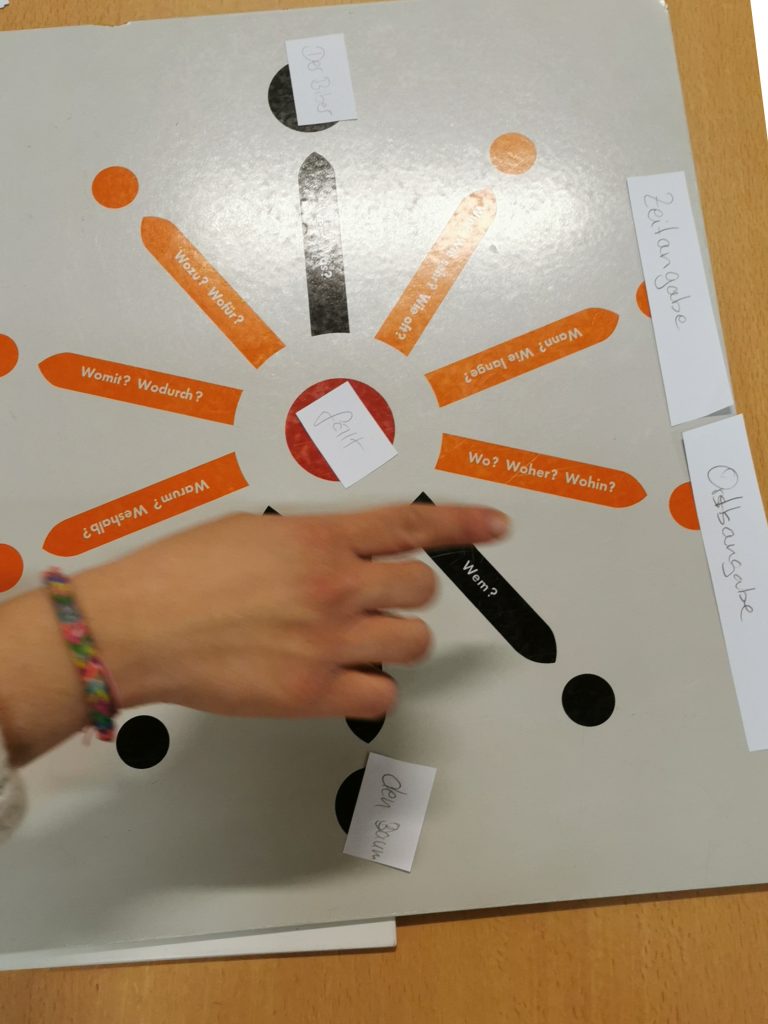 Die grammatikalischen Feinheiten der deutschen Sprache wurden mit bunten Wortarten-Symbolen greifbar. Der Satzgliederstern holte längst verschüttetes Schulwissen zu Subjekt, Prädikat und Objekt wieder an die Oberfläche. Ob der Dativ, der dem Genitiv sein Tod ist, oder das Akkusativobjekt: die früher so trockene Grammatik wurde mit den Montessori-Materialien plötzlich lebendig.