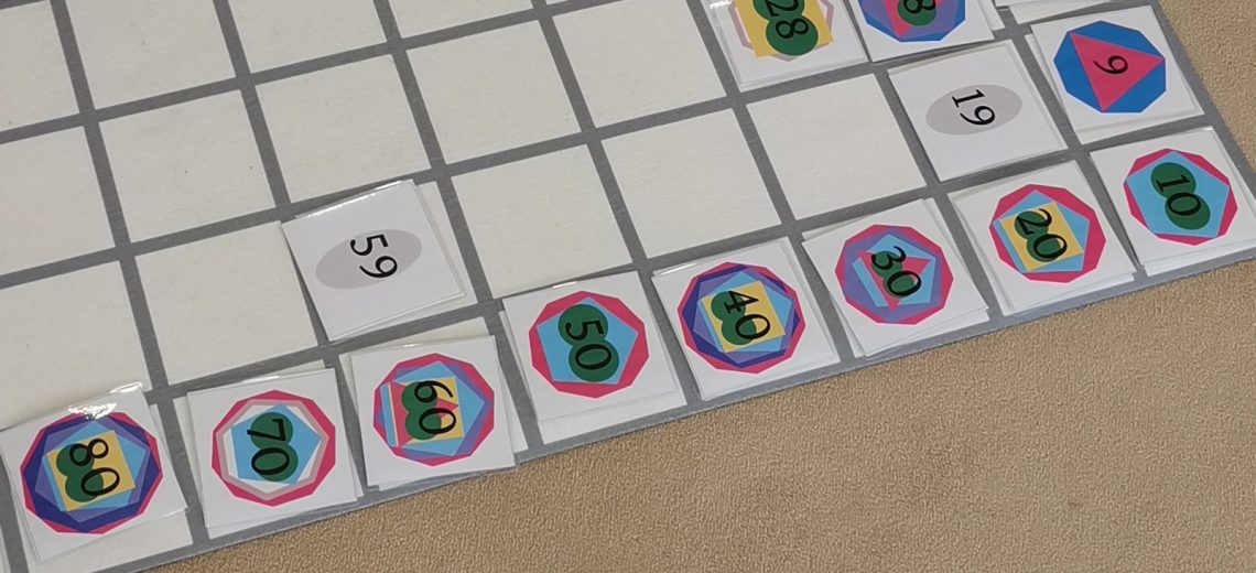 Mit den Montessori-Materialien wird Multiplikation und Grammatik lebendig und greifbar. Die Eltern durften selbst ausprobieren, wie auf dem Hunderterteppich die 1×1-Reihen und Primzahlen auf einmal grafisch sichtbar werden.